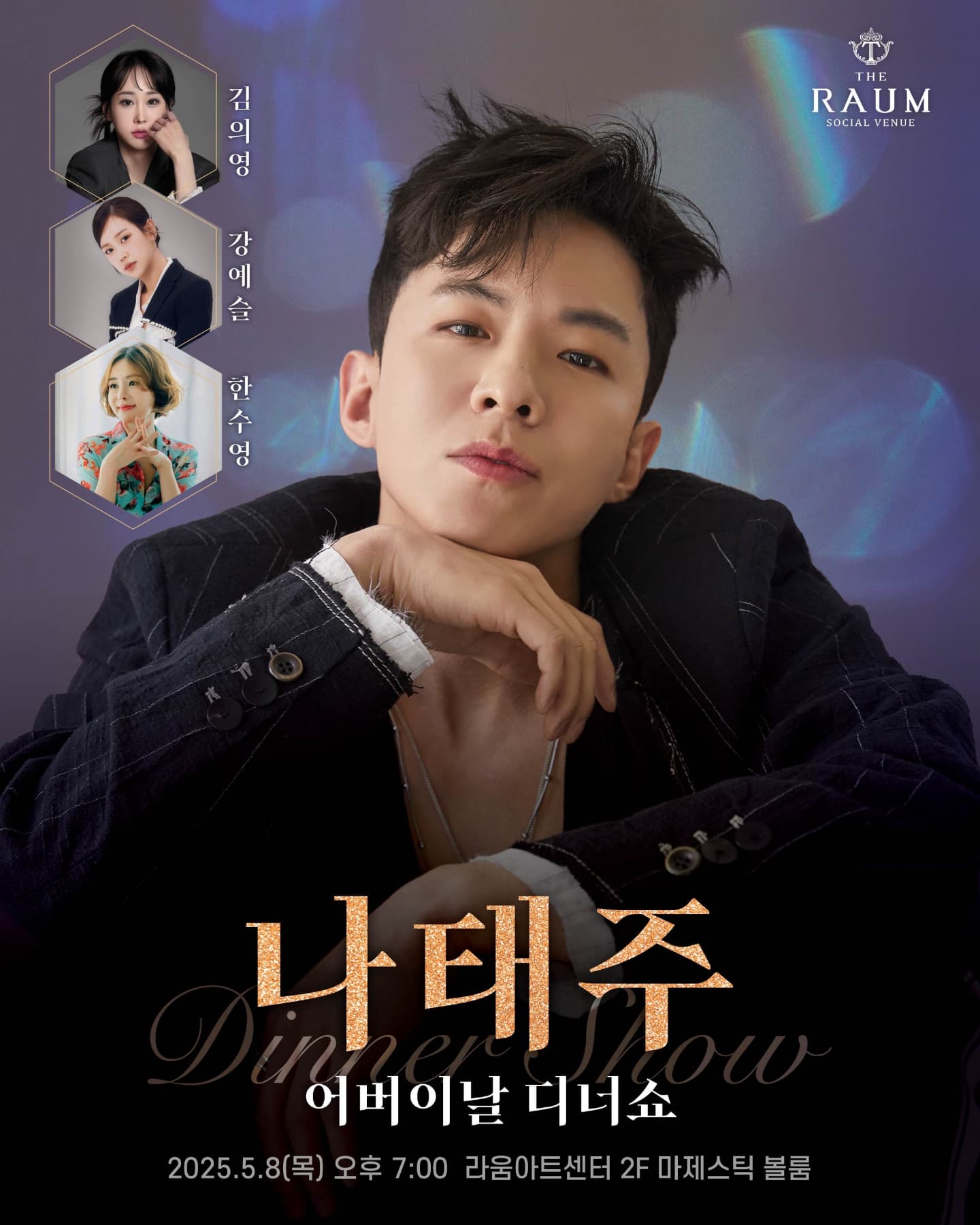 태권도 국가대표 출신에서 '미스터트롯'이 낳은 스타로, 이제는 예능과 무대를 넘나드는 만능 엔터테이너 나태주. 화려한 발차기와 구성진 트로트 가락을 결합한 '태권트롯'이라는 독보적인 장르를 개척한 그는, 지치지 않는 에너지와 긍정적인 매력으로 많은 사랑을 받고 있습니다.