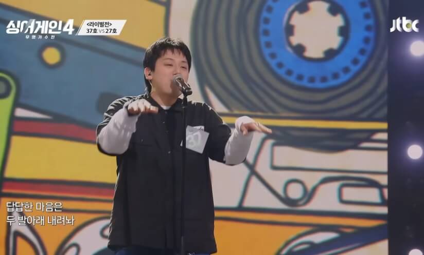 아이돌의 곡을 밴드 사운드와 결합하여 혼자서 무대를 꽉 채우는 능력은 경이로울 정도였습니다. 강력한 경쟁자였던 27호 가수와의 빅매치 끝에 승리하며 4라운드에 진출하는 쾌거를 이루었습니다.
