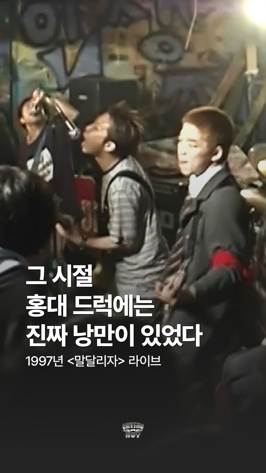 크라잉넛(Crying Nut)은 1993년 서울 동부이촌동 출신의 동네 친구들이 결성한 대한민국 1세대 펑크 록 밴드입니다. 1995년 홍대 클럽 '드럭' 오디션 합격 후 본격적인 활동을 시작했으며, 1996년 스플릿 앨범 으로 정식 데뷔했습니다.